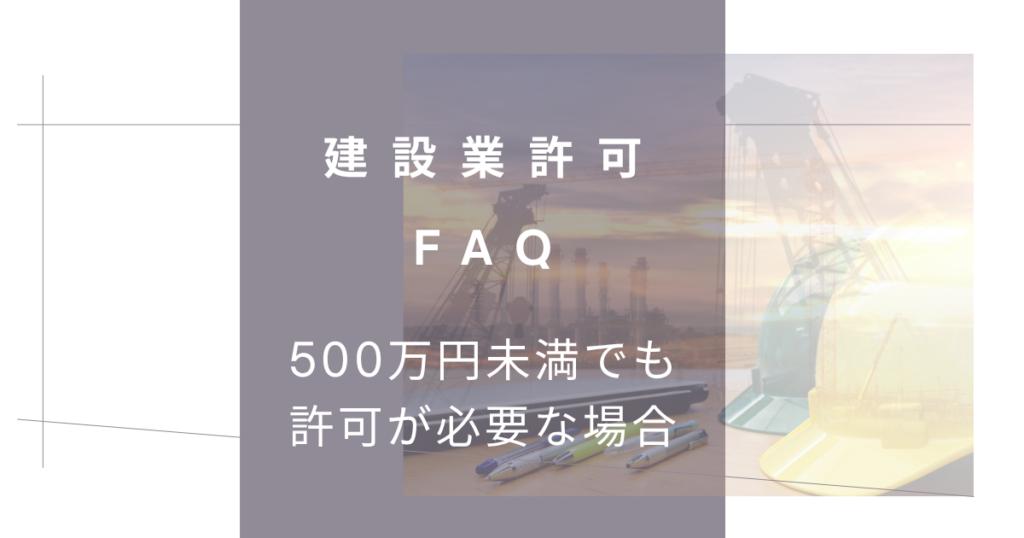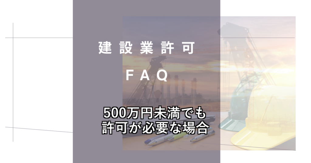 原則として税込500万円未満(建築一式は1,500万円未満)の工事は許可なく請け負えますが、例外もあります。複数の工事を同一業者に連続発注したり、工事を分割して発注したりすることで実質的に500万円以上になると判断される場合は許可が必要です。