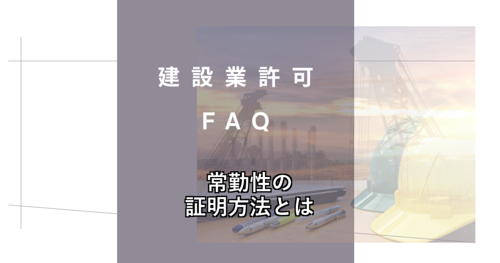 建設業許可の申請では、経営業務の管理責任者(経管)と専任技術者が「常勤」であることを証明する必要があります。常勤性の証明には、健康保険の被保険者証や住民票など、その人物が実際にその事業所で継続して勤務していることを示す書類を用います。