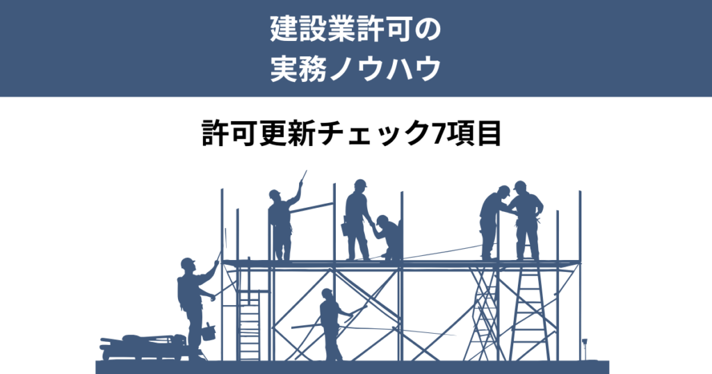 建設業許可の更新をスムーズに行うためには、次の7点を定期的に確認することが重要です。