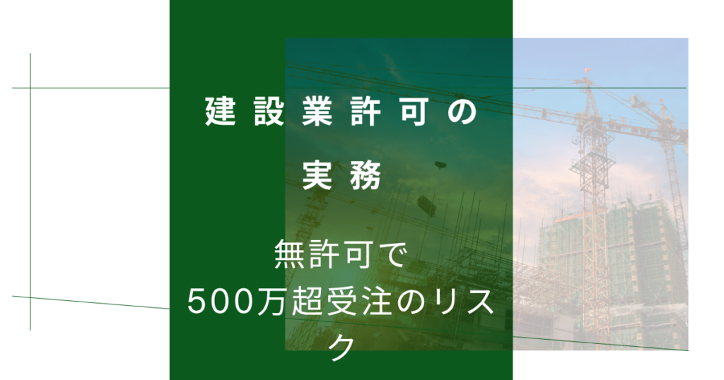 建設業許可なしで500万円以上の工事を受注してしまった場合、「知らなかった」では済みません。結論をはっきりいうと、建設業法違反として3年以下の懲役または300万円以下の罰金の対象になり得ます。さらに許可取得まで同様の工事を受注できなくなるため、事業継続に深刻な影響が出ます。